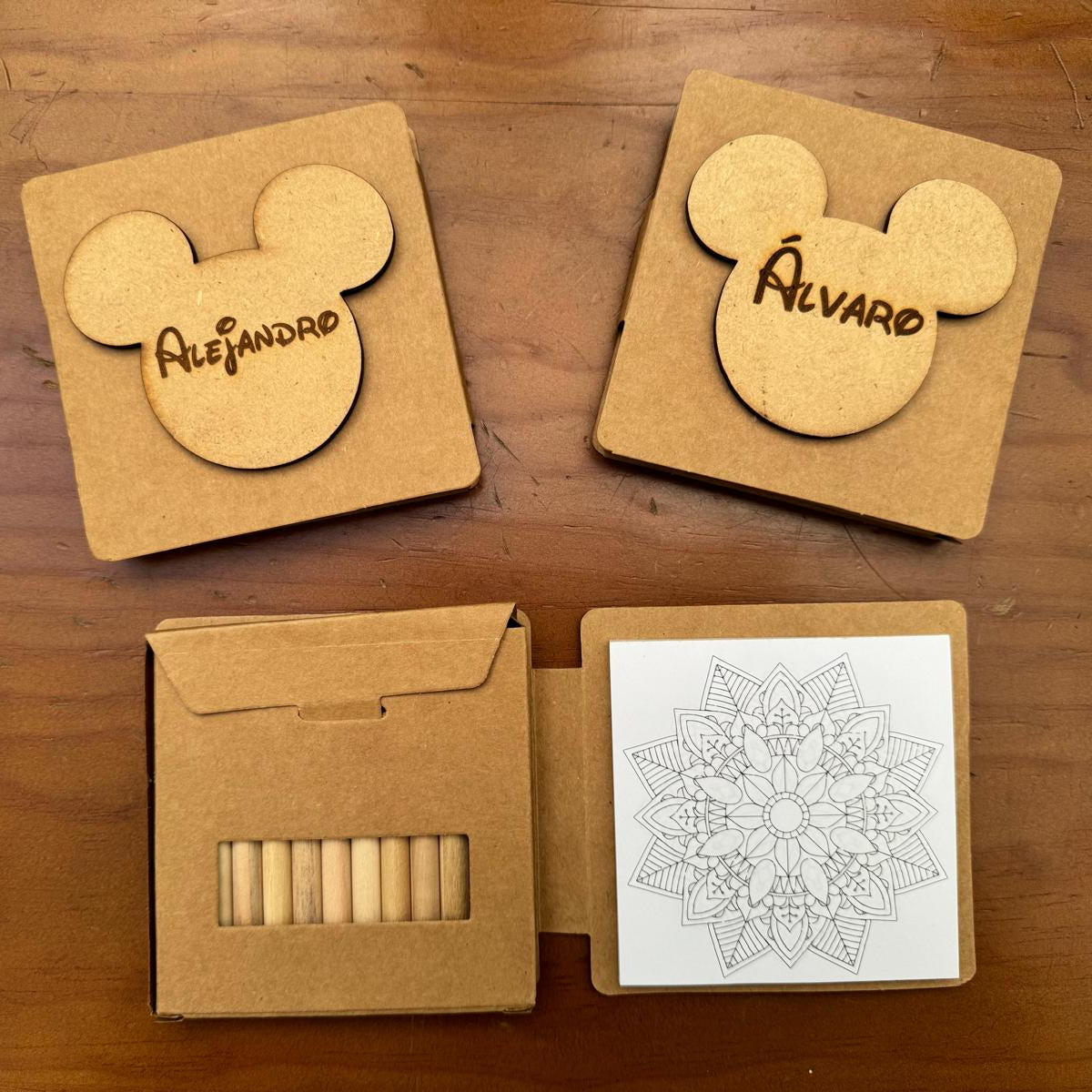 Set Infantil para Colorear Personalizado con Nombre en Madera – Forma Mickey